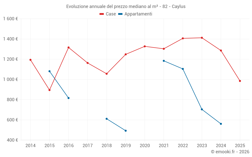 Il prezzo mediano sulle 26 transazioni di case degli ultimi 12 mesi nel comune di Caylus era di 1 384 € al metro quadrato per un valore patrimoniale mediano di 121 810 €. In questo periodo il 60% delle transazioni era tra 831 e 1 766 € al metro quadrato (dal 2° all'8° decile).