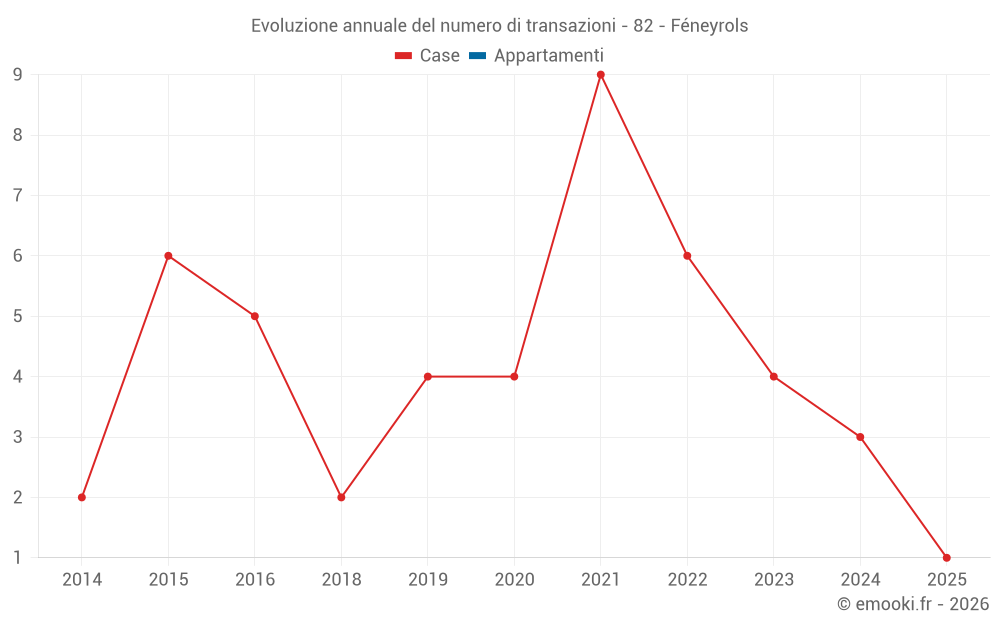 Attenzione, ultimo anno incompleto. Le proiezioni sono effettuate in base alle proporzioni tra semestri dell'anno precedente a livello dipartimentale/nazionale e per tipo di proprietà.