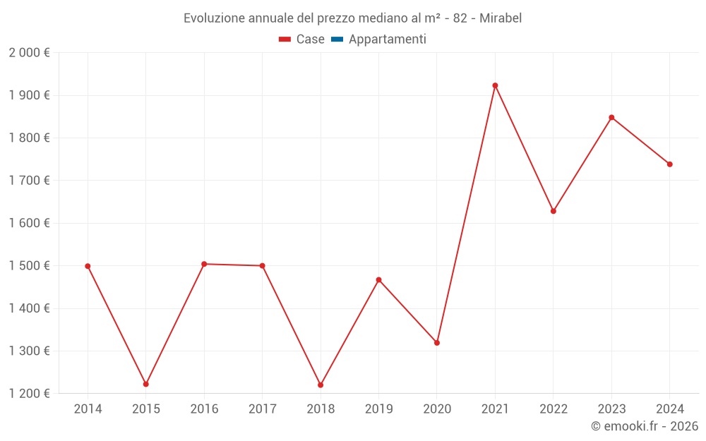 Evoluzione annuale del prezzo mediano al m²