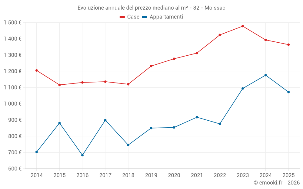 Qual è il prezzo al m2 delle case in Moissac?