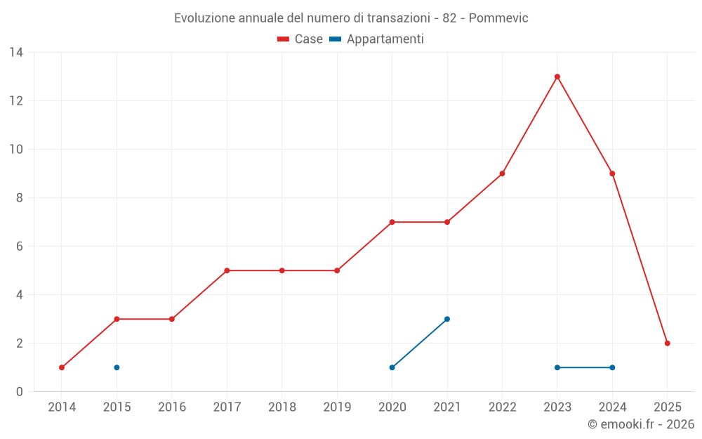 Il prezzo mediano sulle 20 transazioni di case degli ultimi 24 mesi nel comune di Pommevic era di 1 254 € al metro quadrato per un valore patrimoniale mediano di 134 875 €. In questo periodo il 60% delle transazioni era tra 543 e 1 785 € al metro quadrato (dal 2° all'8° decile).