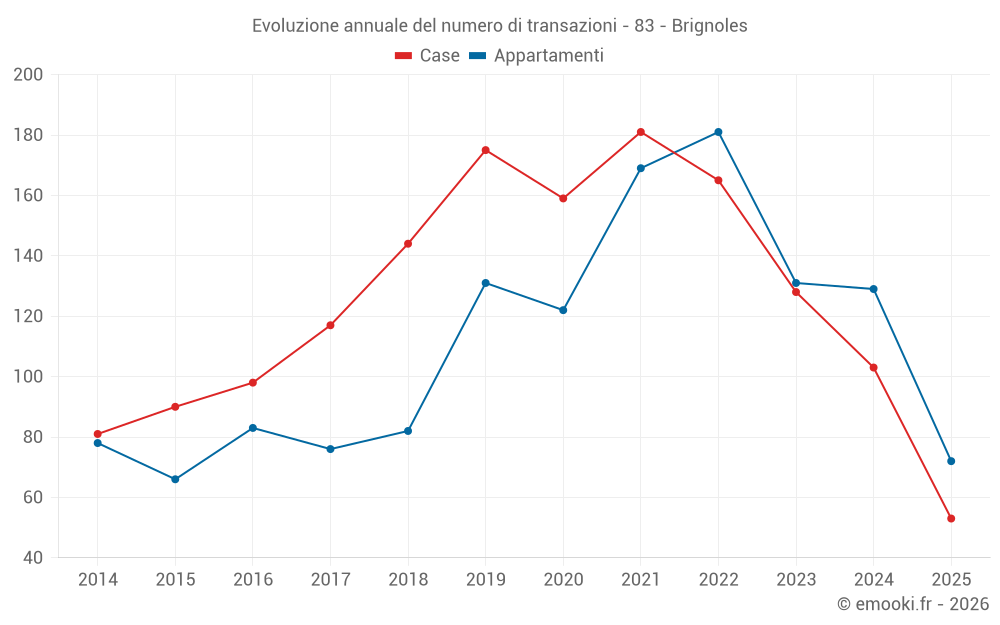 Il prezzo mediano sulle 39 transazioni di appartamenti degli ultimi 3 mesi nel comune di Brignoles era di 2 250 € al metro quadrato per un valore patrimoniale mediano di 117 000 €. In questo periodo il 60% delle transazioni era tra 1 390 e 3 162 € al metro quadrato (dal 2° all'8° decile).
