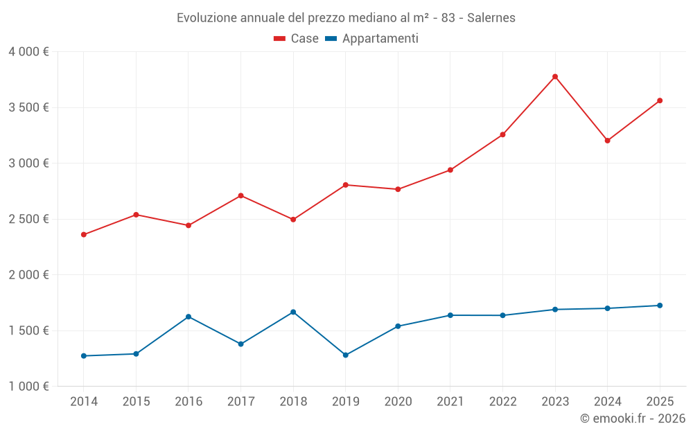 Qual è il prezzo al m2 delle case in Salernes?