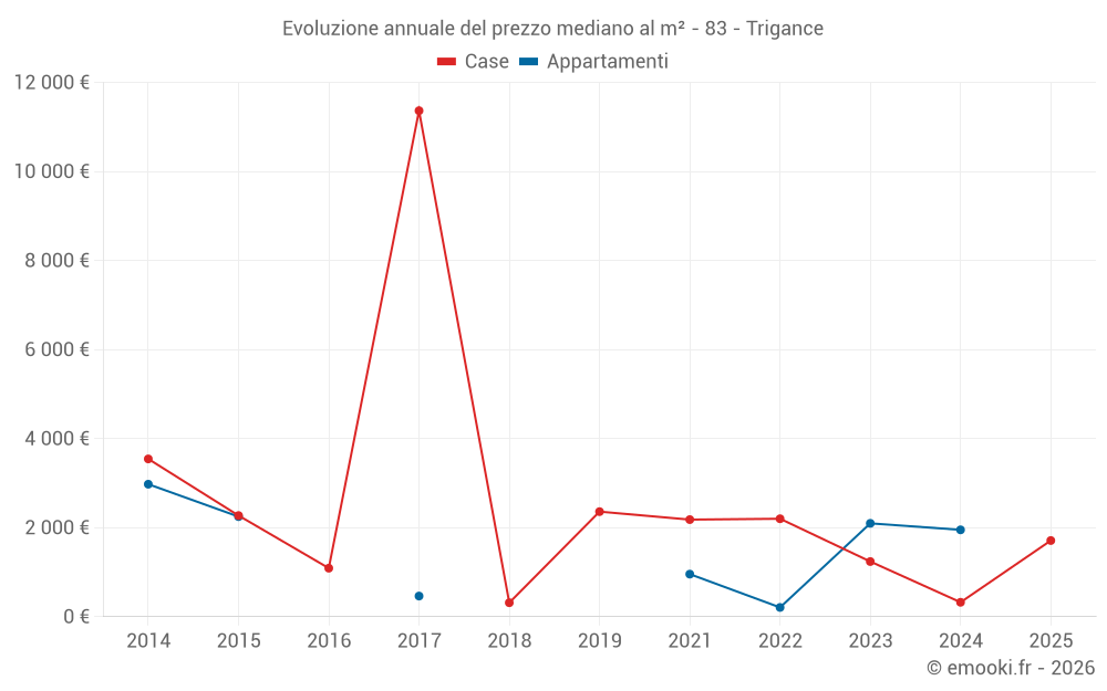 Evoluzione del prezzo mediano al m² degli appartamenti
