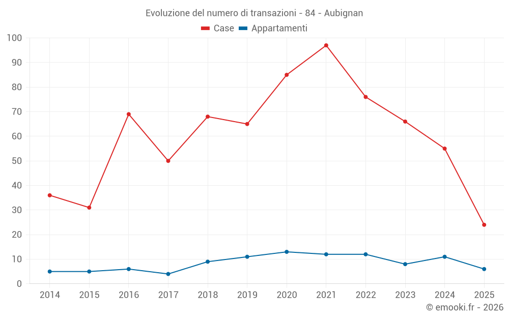 Attenzione, ultimo anno incompleto. Le proiezioni sono effettuate in base alle proporzioni tra semestri dell'anno precedente a livello dipartimentale/nazionale e per tipo di proprietà.