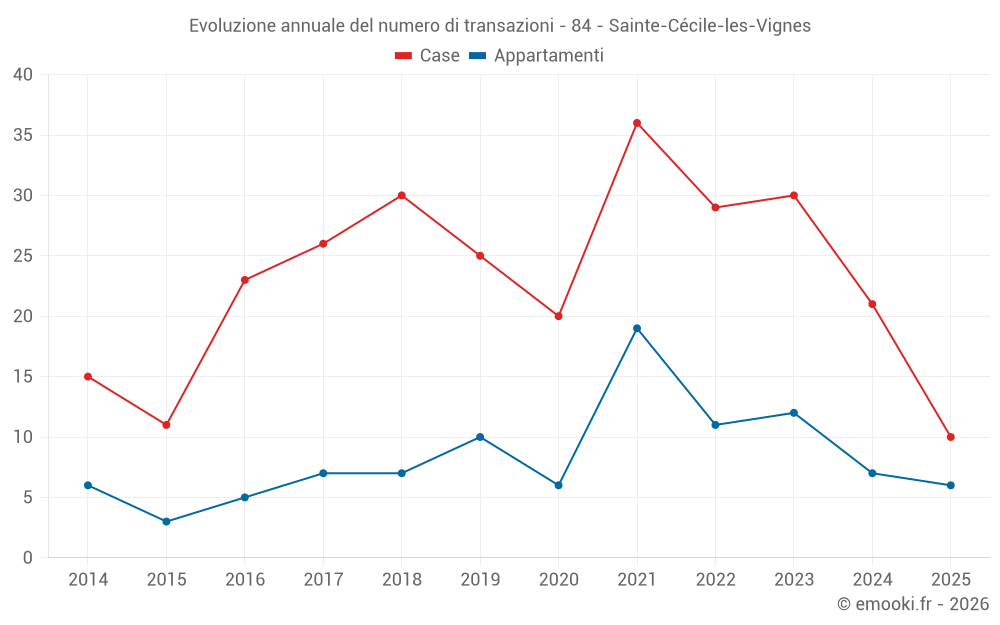 Il prezzo mediano sulle 22 transazioni di case degli ultimi 12 mesi nel comune di Sainte-Cécile-les-Vignes era di 2 682 € al metro quadrato per un valore patrimoniale mediano di 260 075 €. In questo periodo il 60% delle transazioni era tra 1 801 e 3 432 € al metro quadrato (dal 2° all'8° decile).