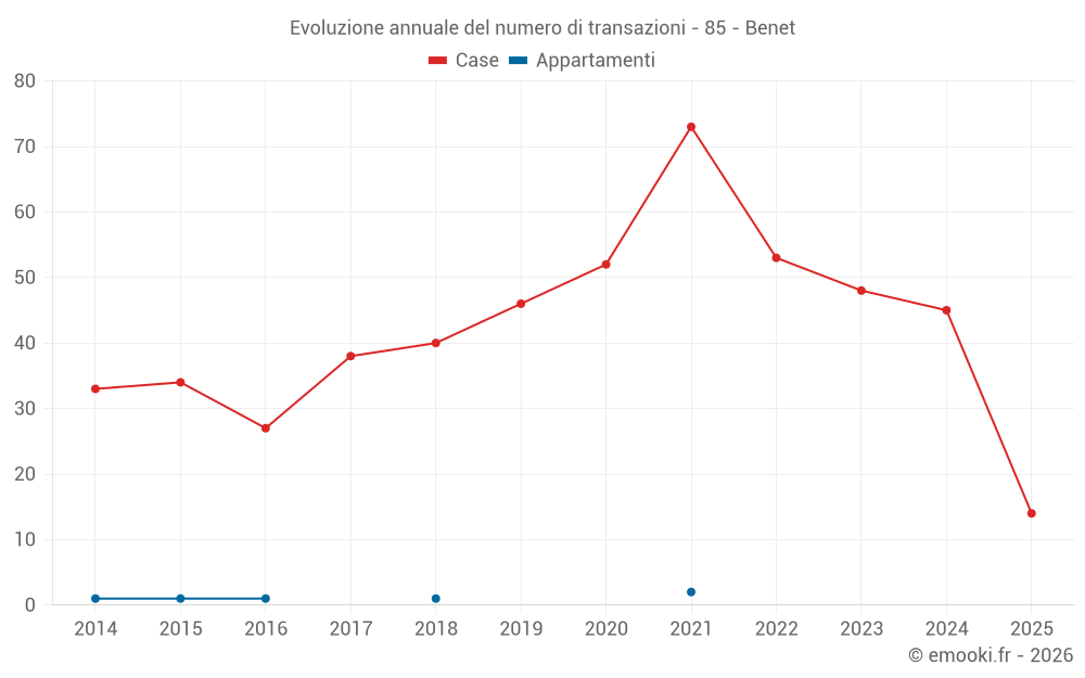 Il prezzo mediano sulle 40 transazioni di case degli ultimi 12 mesi nel comune di Benet era di 1 616 € al metro quadrato per un valore patrimoniale mediano di 182 000 €. In questo periodo il 60% delle transazioni era tra 1 160 e 2 281 € al metro quadrato (dal 2° all'8° decile).