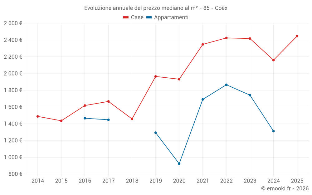 Qual è il prezzo al m2 delle case in Coëx?