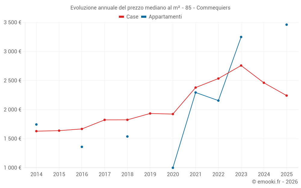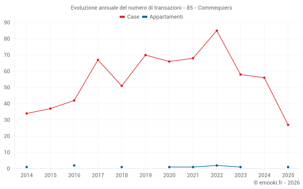 Il prezzo mediano sulle 27 transazioni di case degli ultimi 6 mesi nel comune di Commequiers era di 2 242 € al metro quadrato per un valore patrimoniale mediano di 238 000 €. In questo periodo il 60% delle transazioni era tra 1 969 e 3 021 € al metro quadrato (dal 2° all'8° decile).