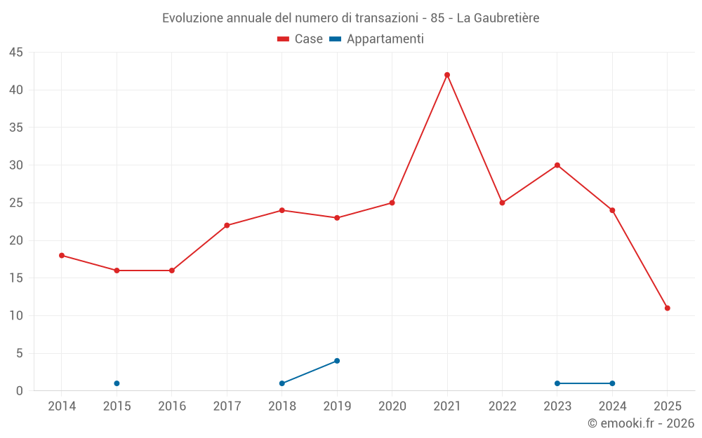 Il prezzo mediano sulle 22 transazioni di case degli ultimi 12 mesi nel comune di La Gaubretière era di 2 000 € al metro quadrato per un valore patrimoniale mediano di 210 000 €. In questo periodo il 60% delle transazioni era tra 1 689 e 2 366 € al metro quadrato (dal 2° all'8° decile).