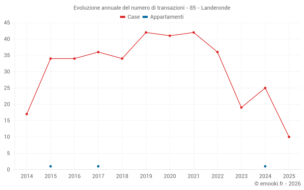 Il prezzo mediano sulle 26 transazioni di case degli ultimi 12 mesi nel comune di Landeronde era di 2 287 € al metro quadrato per un valore patrimoniale mediano di 211 635 €. In questo periodo il 60% delle transazioni era tra 1 525 e 2 692 € al metro quadrato (dal 2° all'8° decile).