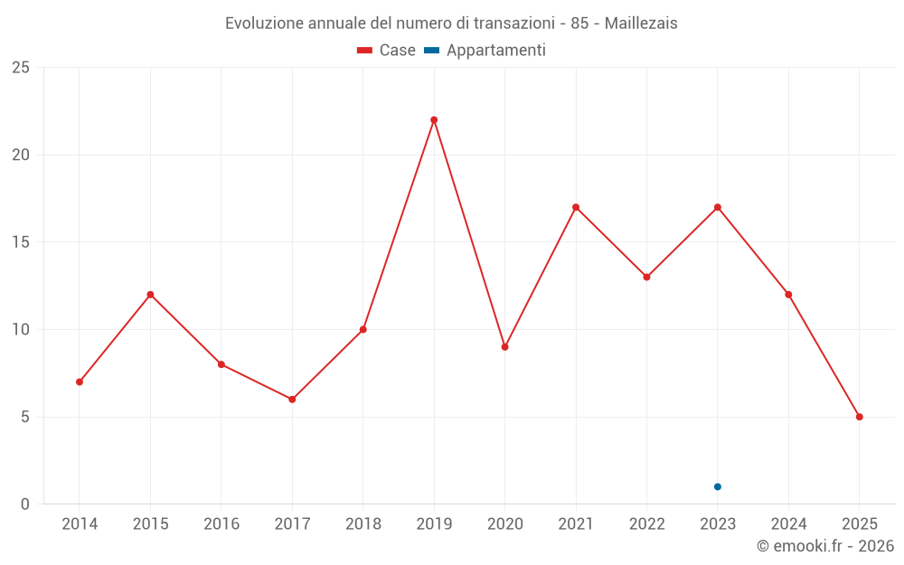 Il prezzo mediano sulle 25 transazioni di case degli ultimi 24 mesi nel comune di Maillezais era di 1 345 € al metro quadrato per un valore patrimoniale mediano di 146 000 €. In questo periodo il 60% delle transazioni era tra 889 e 1 789 € al metro quadrato (dal 2° all'8° decile).
