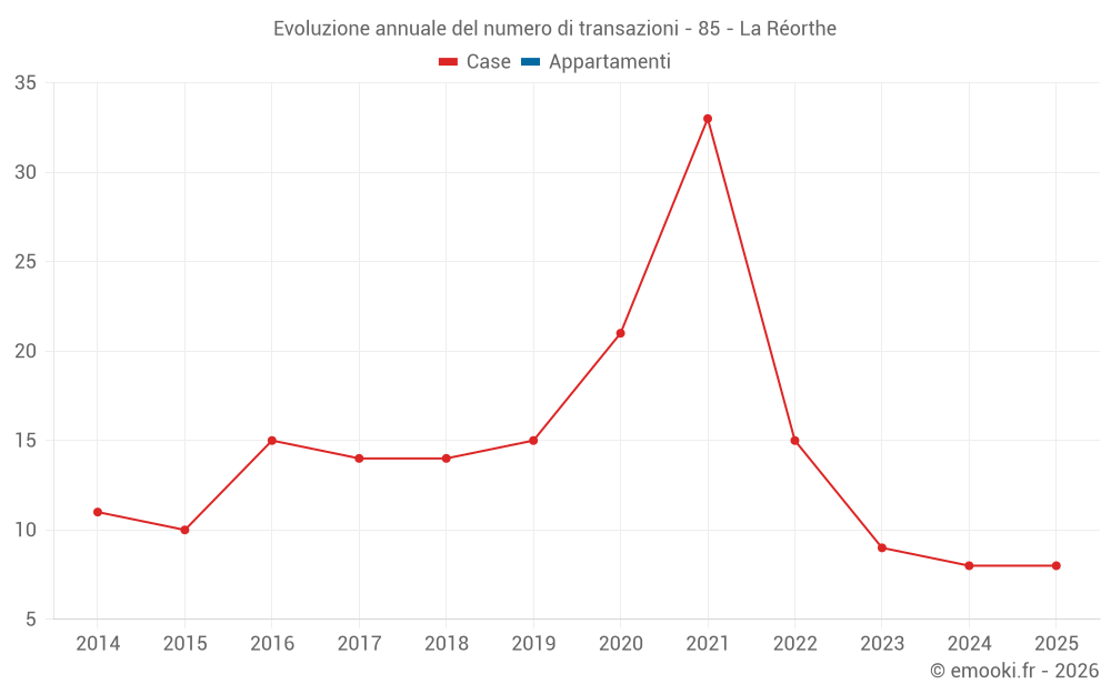 Il prezzo mediano sulle 19 transazioni di case degli ultimi 24 mesi nel comune di La Réorthe era di 1 060 € al metro quadrato per un valore patrimoniale mediano di 110 000 €. In questo periodo il 60% delle transazioni era tra 765 e 1 868 € al metro quadrato (dal 2° all'8° decile).