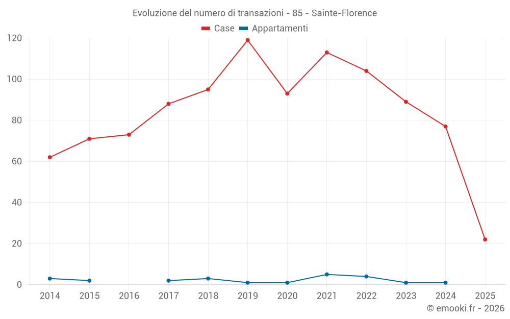 Attenzione, ultimo anno incompleto. Le proiezioni sono effettuate in base alle proporzioni tra semestri dell'anno precedente a livello dipartimentale/nazionale e per tipo di proprietà.