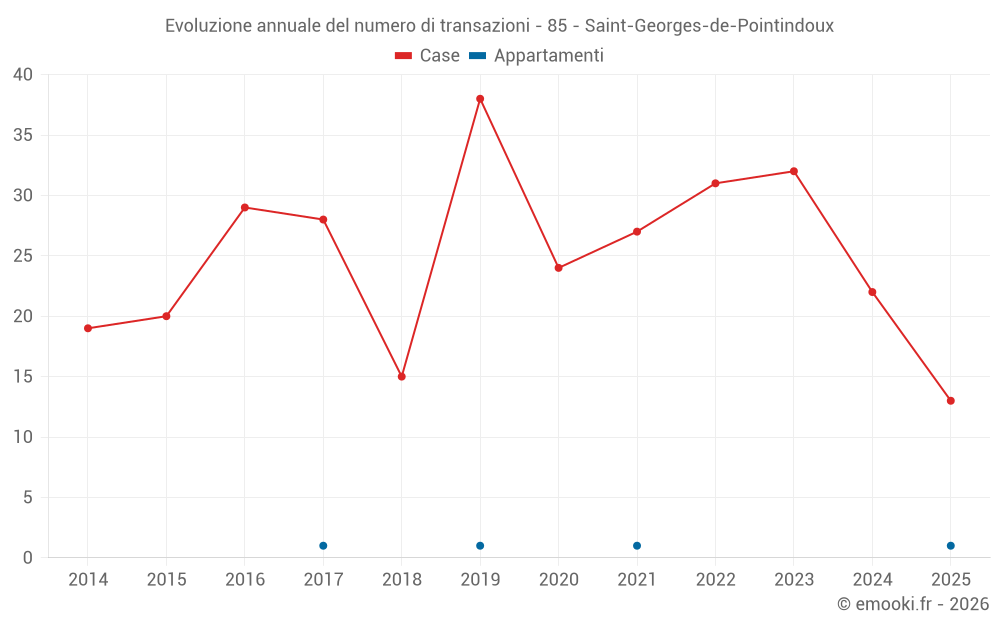 Il prezzo mediano sulle 27 transazioni di case degli ultimi 12 mesi nel comune di Saint-Georges-de-Pointindoux era di 2 333 € al metro quadrato per un valore patrimoniale mediano di 217 000 €. In questo periodo il 60% delle transazioni era tra 1 505 e 2 853 € al metro quadrato (dal 2° all'8° decile).