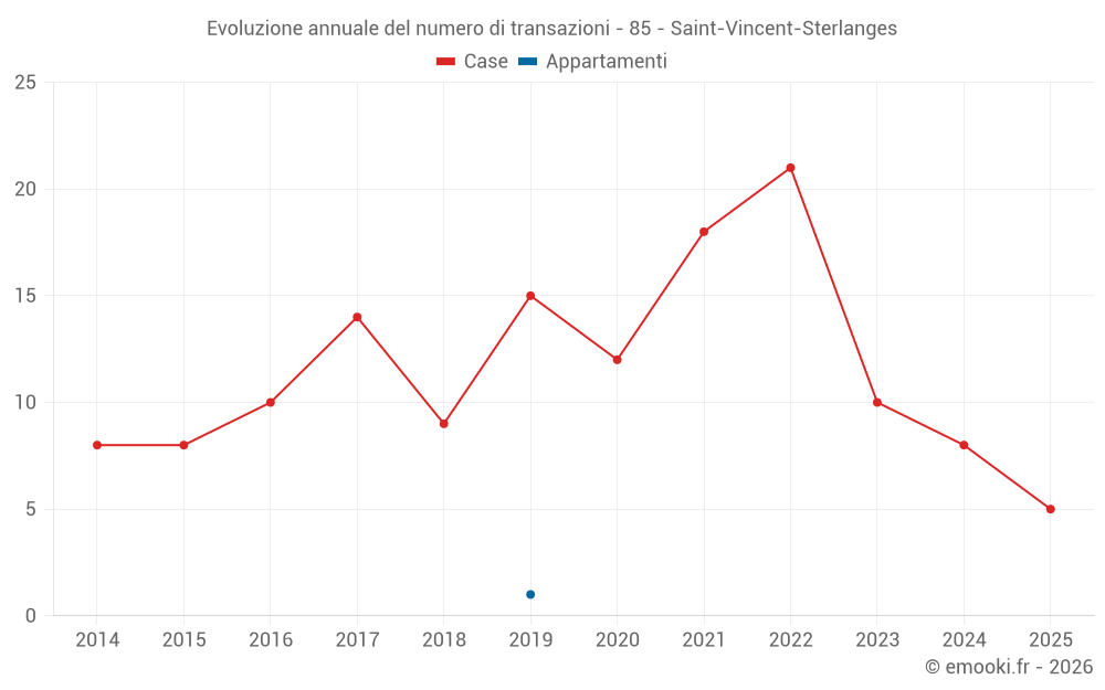 Il prezzo mediano sulle 20 transazioni di case degli ultimi 24 mesi nel comune di Saint-Vincent-Sterlanges era di 1 361 € al metro quadrato per un valore patrimoniale mediano di 129 290 €. In questo periodo il 60% delle transazioni era tra 973 e 2 116 € al metro quadrato (dal 2° all'8° decile).