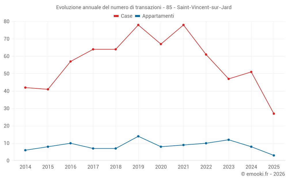 Il prezzo mediano sulle 27 transazioni di case degli ultimi 6 mesi nel comune di Saint-Vincent-sur-Jard era di 3 319 € al metro quadrato per un valore patrimoniale mediano di 225 000 €. In questo periodo il 60% delle transazioni era tra 2 618 e 5 032 € al metro quadrato (dal 2° all'8° decile).