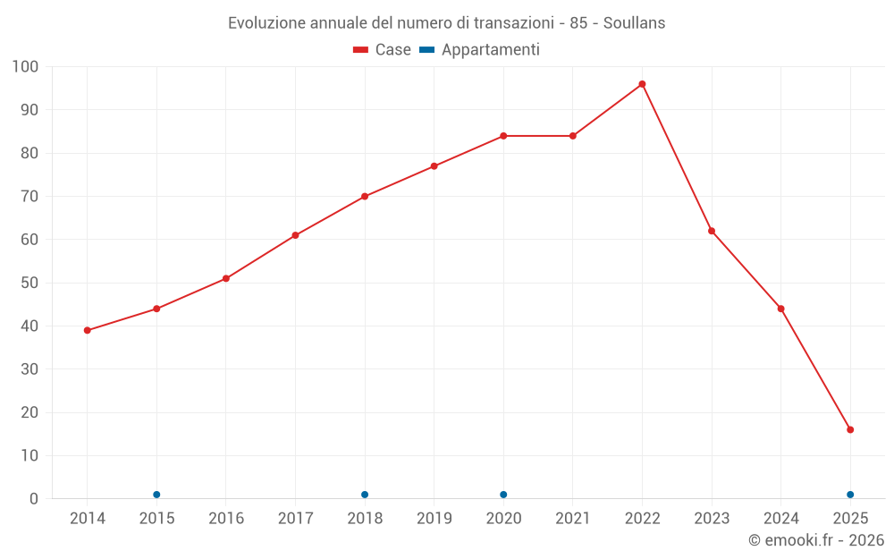 Il prezzo mediano sulle 39 transazioni di case degli ultimi 12 mesi nel comune di Soullans era di 2 554 € al metro quadrato per un valore patrimoniale mediano di 236 000 €. In questo periodo il 60% delle transazioni era tra 1 495 e 2 879 € al metro quadrato (dal 2° all'8° decile).
