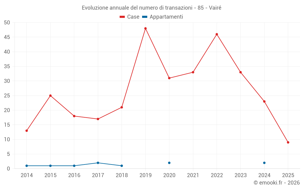 Il prezzo mediano sulle 19 transazioni di case degli ultimi 12 mesi nel comune di Vairé era di 2 667 € al metro quadrato per un valore patrimoniale mediano di 262 500 €. In questo periodo il 60% delle transazioni era tra 2 247 e 3 488 € al metro quadrato (dal 2° all'8° decile).