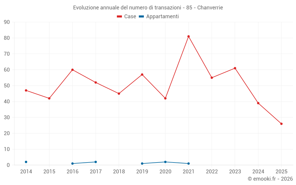 Il prezzo mediano sulle 26 transazioni di case degli ultimi 6 mesi nel comune di Chanverrie era di 2 137 € al metro quadrato per un valore patrimoniale mediano di 199 800 €. In questo periodo il 60% delle transazioni era tra 1 313 e 2 500 € al metro quadrato (dal 2° all'8° decile).