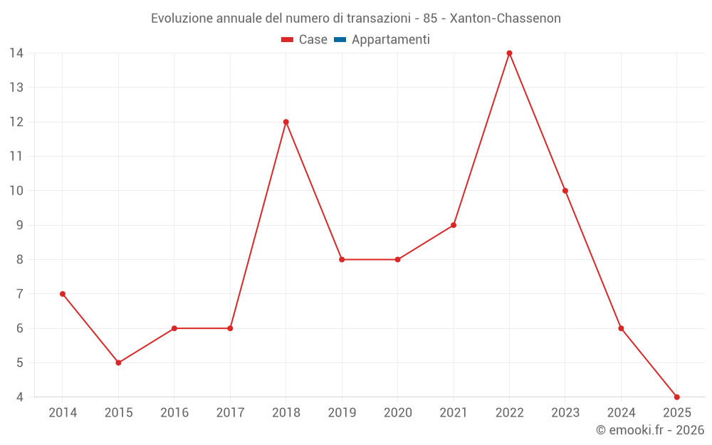 Il prezzo mediano sulle 14 transazioni di case degli ultimi 24 mesi nel comune di Xanton-Chassenon era di 1 385 € al metro quadrato per un valore patrimoniale mediano di 128 500 €. In questo periodo il 60% delle transazioni era tra 960 e 1 707 € al metro quadrato (dal 2° all'8° decile).