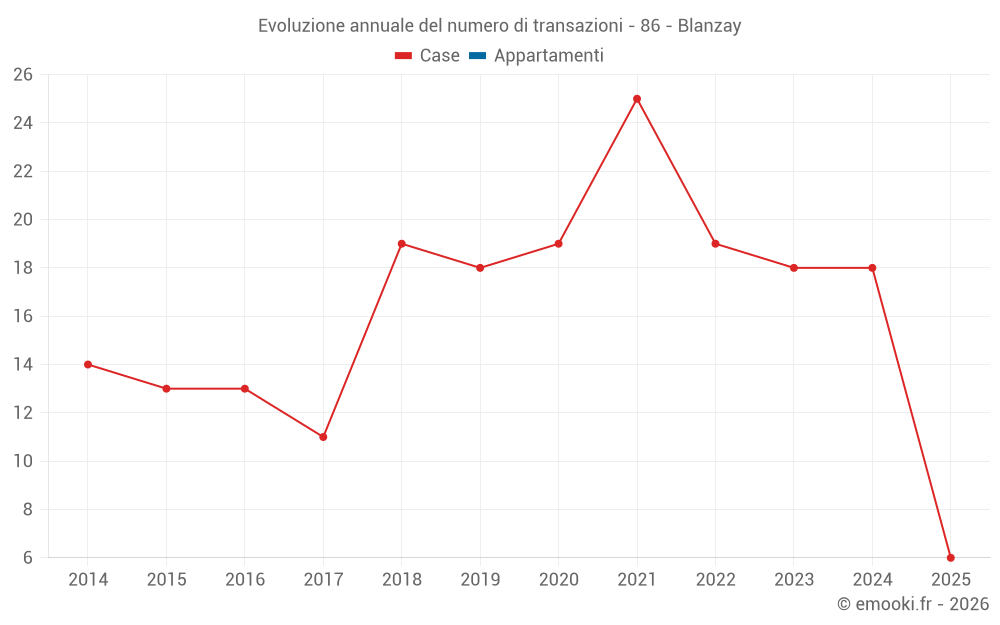 Il prezzo mediano sulle 17 transazioni di case degli ultimi 12 mesi nel comune di Blanzay era di 775 € al metro quadrato per un valore patrimoniale mediano di 128 000 €. In questo periodo il 60% delle transazioni era tra 659 e 1 296 € al metro quadrato (dal 2° all'8° decile).