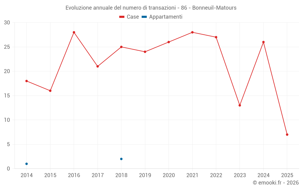 Il prezzo mediano sulle 23 transazioni di case degli ultimi 12 mesi nel comune di Bonneuil-Matours era di 1 438 € al metro quadrato per un valore patrimoniale mediano di 135 000 €. In questo periodo il 60% delle transazioni era tra 915 e 1 810 € al metro quadrato (dal 2° all'8° decile).