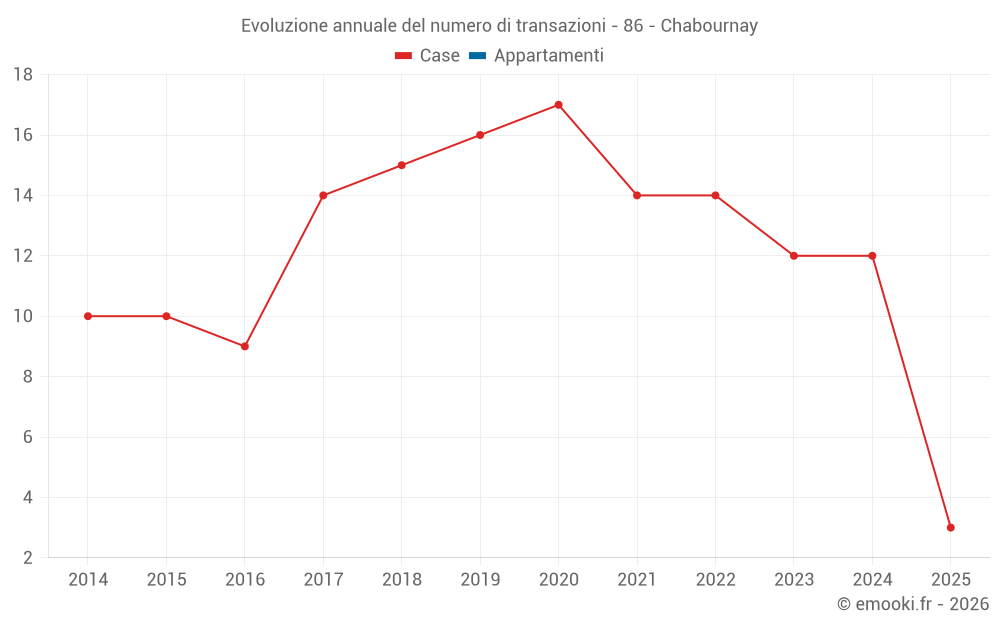 Il prezzo mediano sulle 22 transazioni di case degli ultimi 24 mesi nel comune di Chabournay era di 1 584 € al metro quadrato per un valore patrimoniale mediano di 162 500 €. In questo periodo il 60% delle transazioni era tra 1 298 e 2 248 € al metro quadrato (dal 2° all'8° decile).