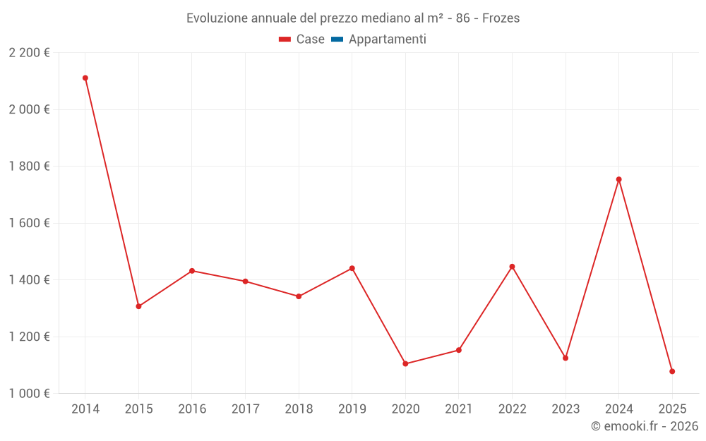 Evoluzione del prezzo mediano al m² degli appartamenti