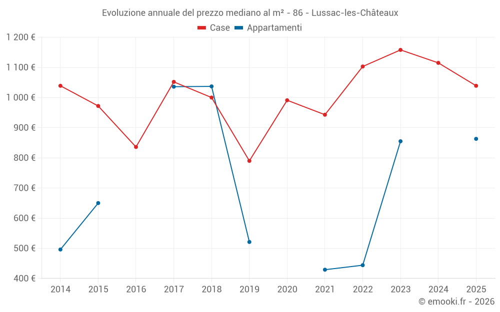 Qual è il prezzo al m2 delle case in Lussac-les-Châteaux?