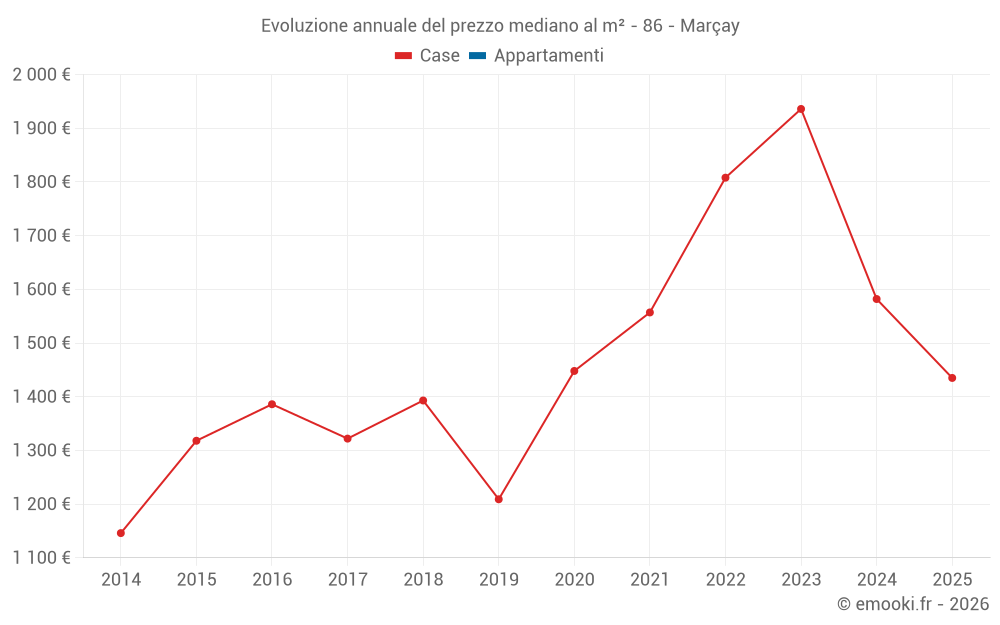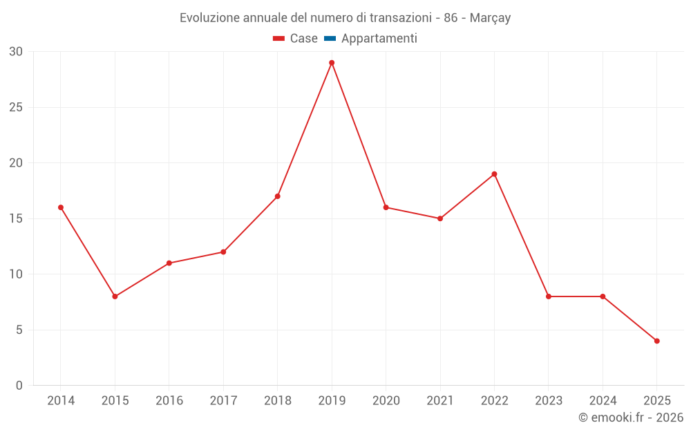 Il prezzo mediano sulle 16 transazioni di case degli ultimi 24 mesi nel comune di Marçay era di 1 580 € al metro quadrato per un valore patrimoniale mediano di 164 218 €. In questo periodo il 60% delle transazioni era tra 1 000 e 1 960 € al metro quadrato (dal 2° all'8° decile).