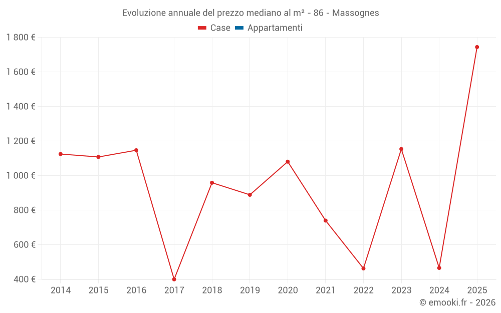Evoluzione del prezzo mediano al m² degli appartamenti