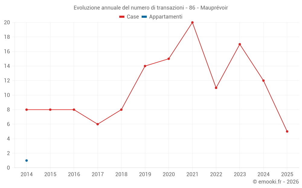 Il prezzo mediano sulle 26 transazioni di case degli ultimi 24 mesi nel comune di Mauprévoir era di 916 € al metro quadrato per un valore patrimoniale mediano di 78 000 €. In questo periodo il 60% delle transazioni era tra 429 e 1 310 € al metro quadrato (dal 2° all'8° decile).