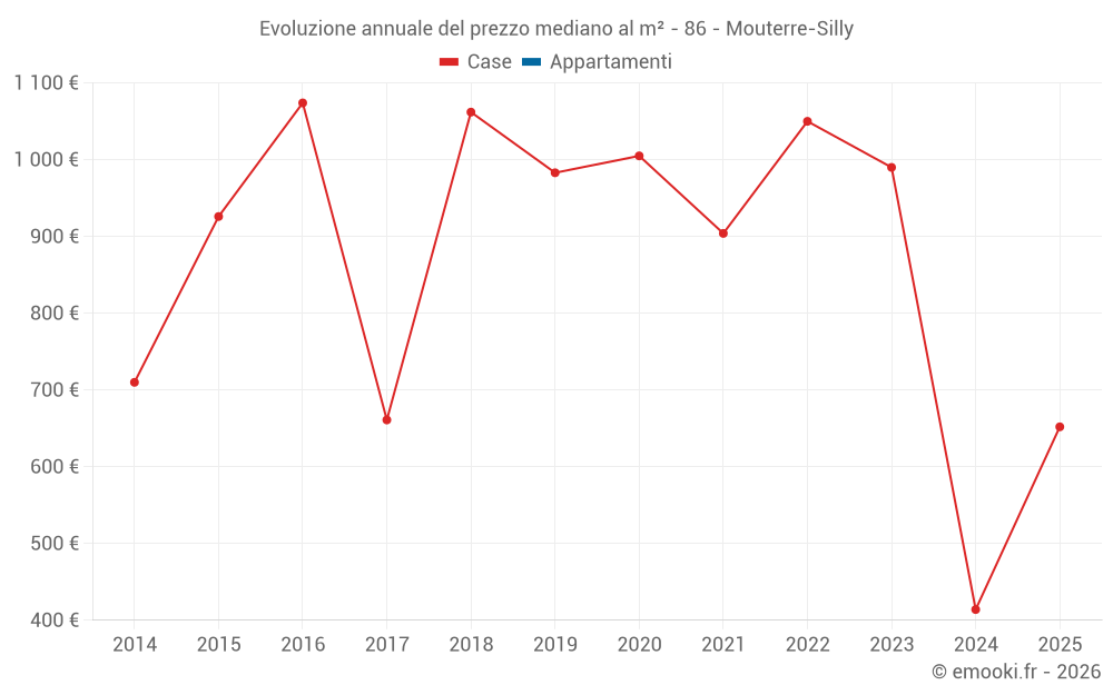 Evoluzione del prezzo mediano al m² degli appartamenti