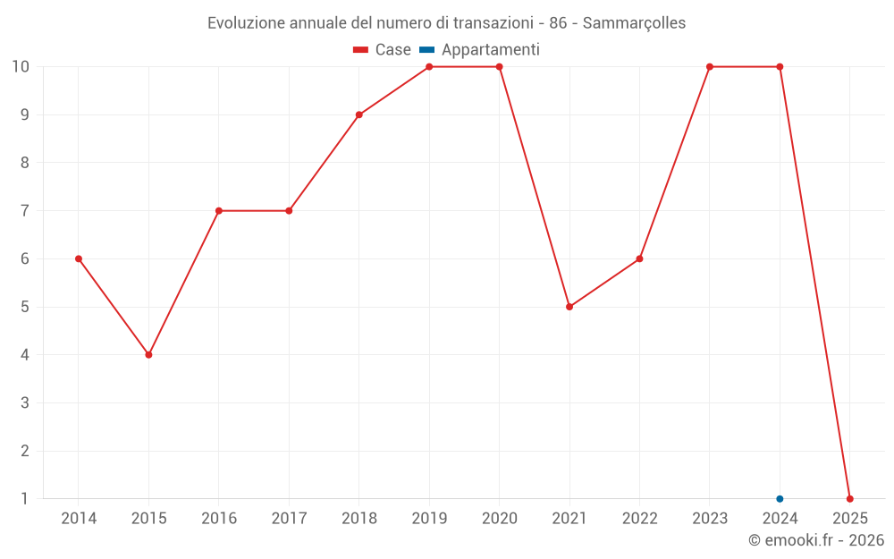 Il prezzo mediano sulle 17 transazioni di case degli ultimi 24 mesi nel comune di Sammarçolles era di 1 452 € al metro quadrato per un valore patrimoniale mediano di 138 000 €. In questo periodo il 60% delle transazioni era tra 737 e 1 778 € al metro quadrato (dal 2° all'8° decile).