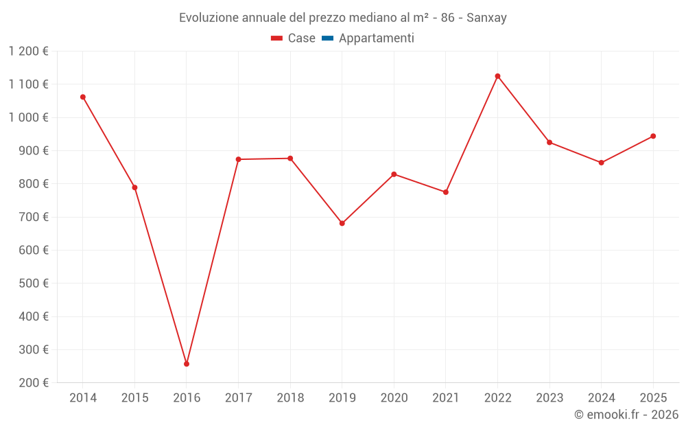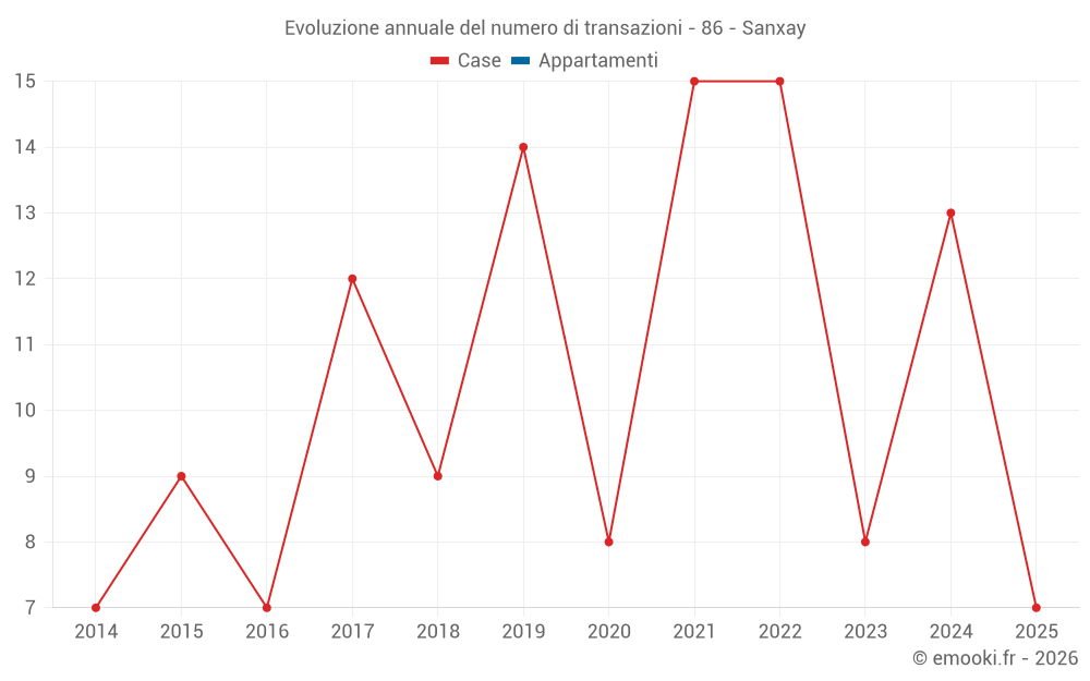Il prezzo mediano sulle 23 transazioni di case degli ultimi 24 mesi nel comune di Sanxay era di 923 € al metro quadrato per un valore patrimoniale mediano di 85 000 €. In questo periodo il 60% delle transazioni era tra 469 e 1 477 € al metro quadrato (dal 2° all'8° decile).