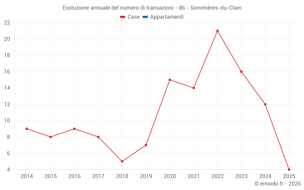 Il prezzo mediano sulle 25 transazioni di case degli ultimi 24 mesi nel comune di Sommières-du-Clain era di 681 € al metro quadrato per un valore patrimoniale mediano di 61 000 €. In questo periodo il 60% delle transazioni era tra 444 e 1 021 € al metro quadrato (dal 2° all'8° decile).