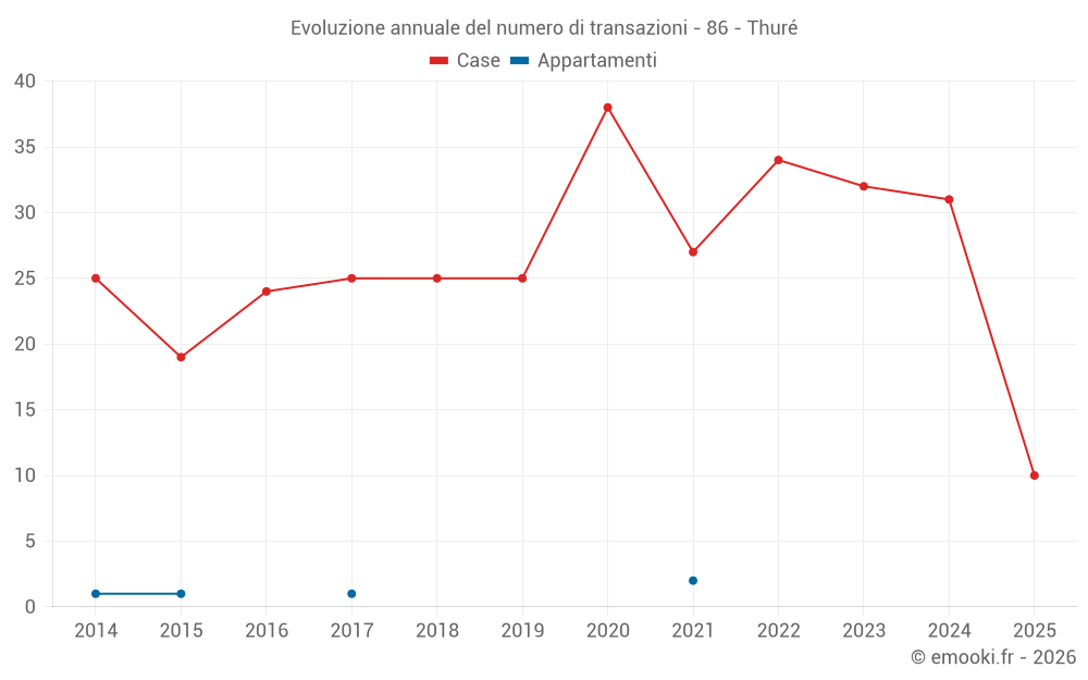 Il prezzo mediano sulle 25 transazioni di case degli ultimi 12 mesi nel comune di Thuré era di 1 305 € al metro quadrato per un valore patrimoniale mediano di 155 000 €. In questo periodo il 60% delle transazioni era tra 896 e 1 937 € al metro quadrato (dal 2° all'8° decile).