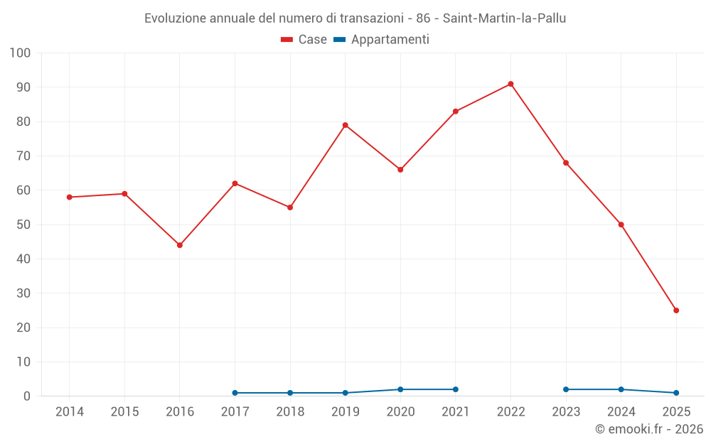 Il prezzo mediano sulle 25 transazioni di case degli ultimi 6 mesi nel comune di Saint-Martin-la-Pallu era di 1 506 € al metro quadrato per un valore patrimoniale mediano di 162 000 €. In questo periodo il 60% delle transazioni era tra 1 310 e 2 033 € al metro quadrato (dal 2° all'8° decile).
