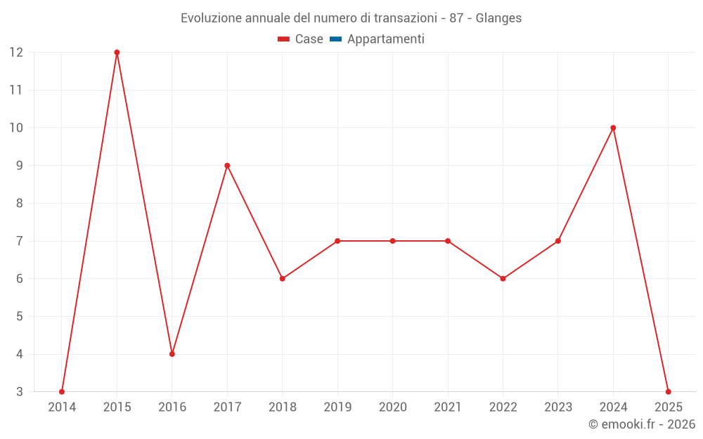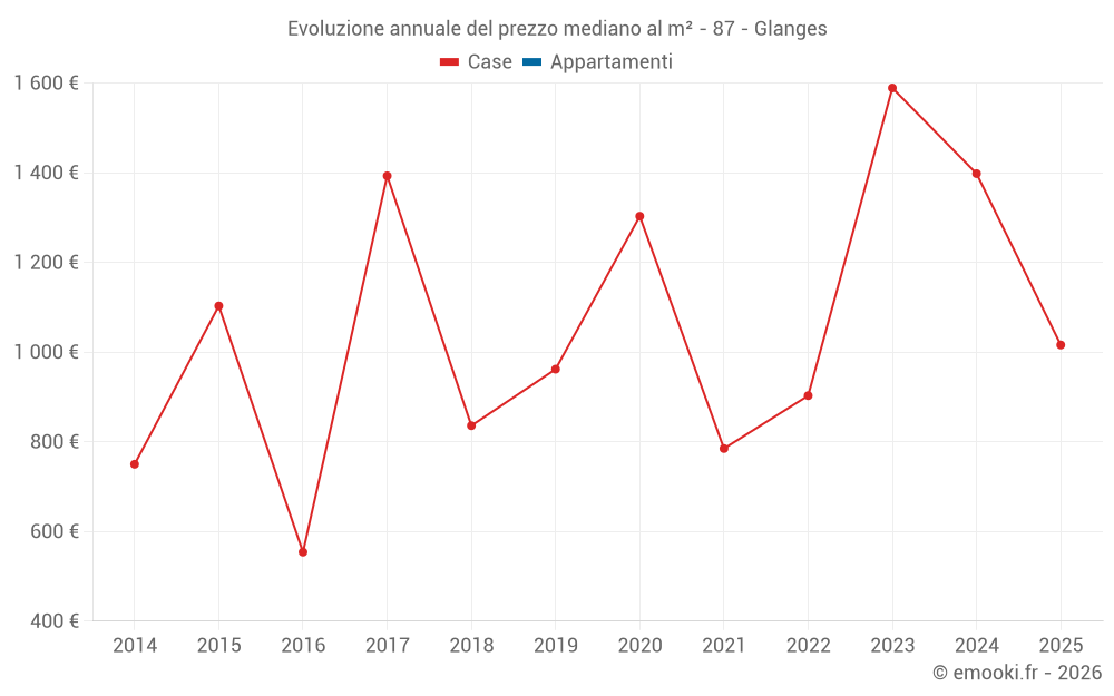 Il prezzo mediano sulle 17 transazioni di case degli ultimi 24 mesi nel comune di Glanges era di 1 430 € al metro quadrato per un valore patrimoniale mediano di 123 000 €. In questo periodo il 60% delle transazioni era tra 1 037 e 1 965 € al metro quadrato (dal 2° all'8° decile).