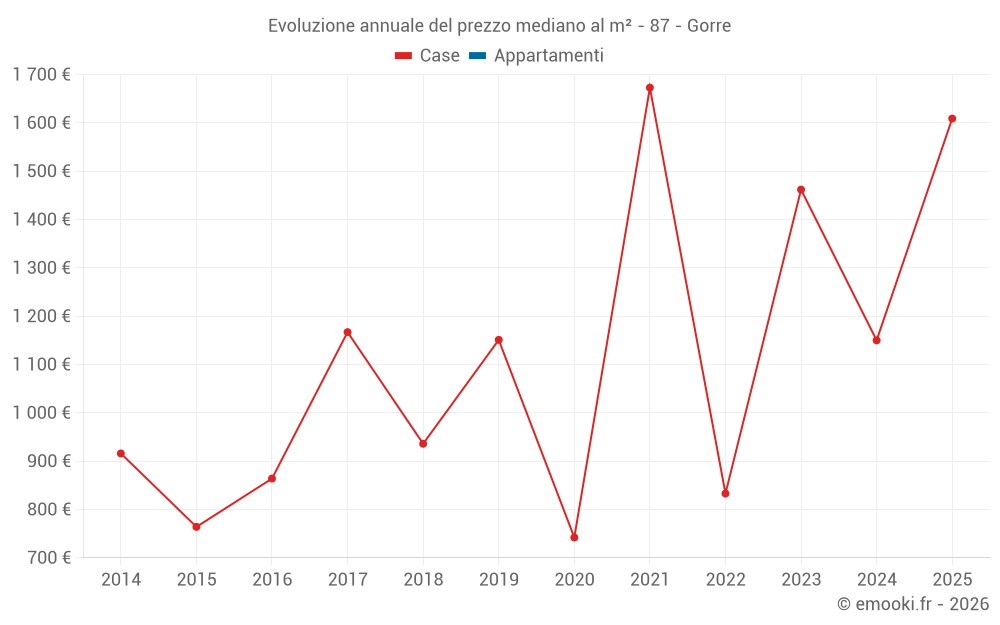 Il prezzo al m² delle case è diminuito del 3.8% da 4 anni, ma è aumentato del 117% in 5 anni.