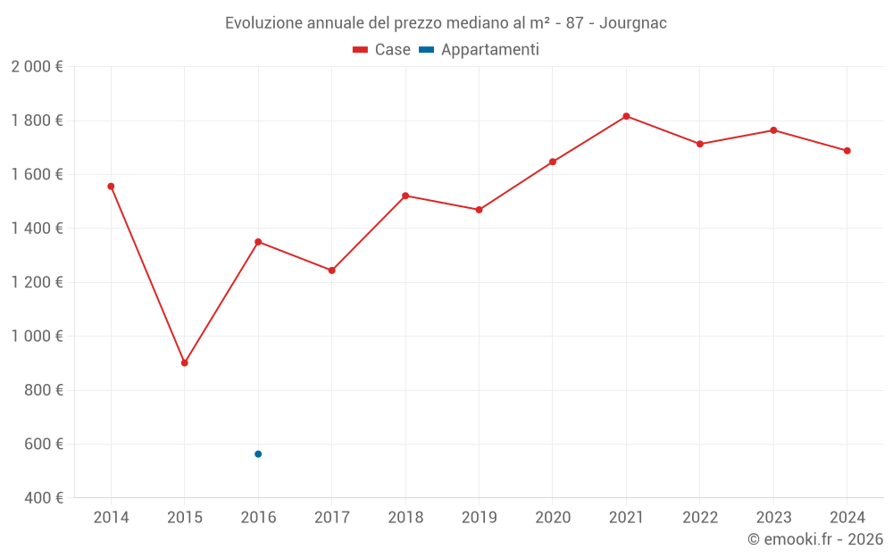 Evoluzione del prezzo mediano al m² degli appartamenti