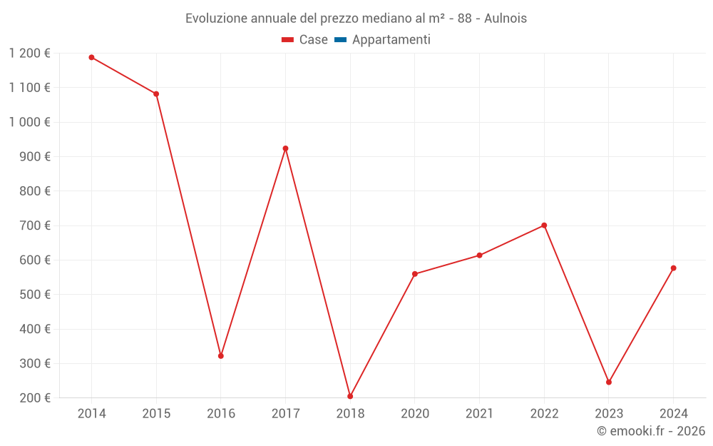 Evoluzione del prezzo mediano al m² degli appartamenti