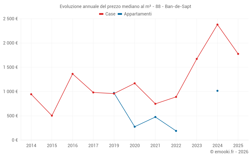 Evoluzione del prezzo mediano al m² degli appartamenti