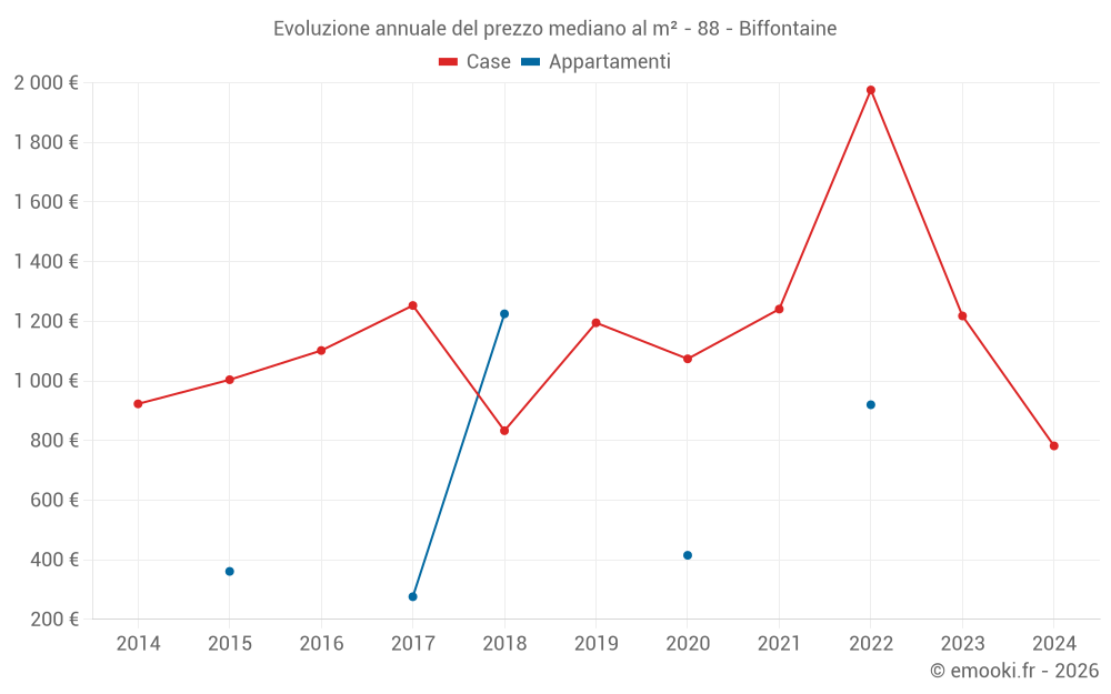 Evoluzione del prezzo mediano al m² degli appartamenti
