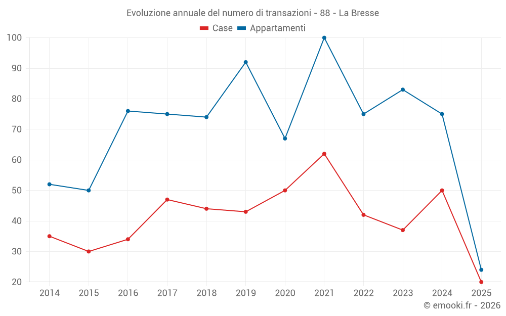 Il prezzo mediano sulle 20 transazioni di case degli ultimi 6 mesi nel comune di La Bresse era di 2 952 € al metro quadrato per un valore patrimoniale mediano di 212 500 €. In questo periodo il 60% delle transazioni era tra 1 577 e 4 250 € al metro quadrato (dal 2° all'8° decile).