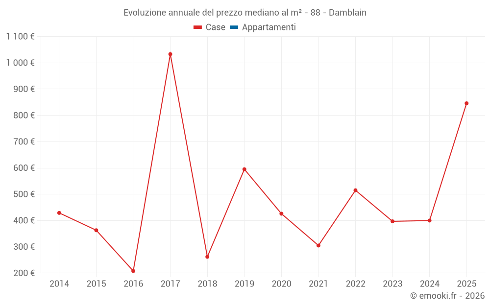 Il prezzo mediano sulle 14 transazioni di case degli ultimi 24 mesi nel comune di Damblain era di 444 € al metro quadrato per un valore patrimoniale mediano di 39 750 €. In questo periodo il 60% delle transazioni era tra 319 e 1 063 € al metro quadrato (dal 2° all'8° decile).
