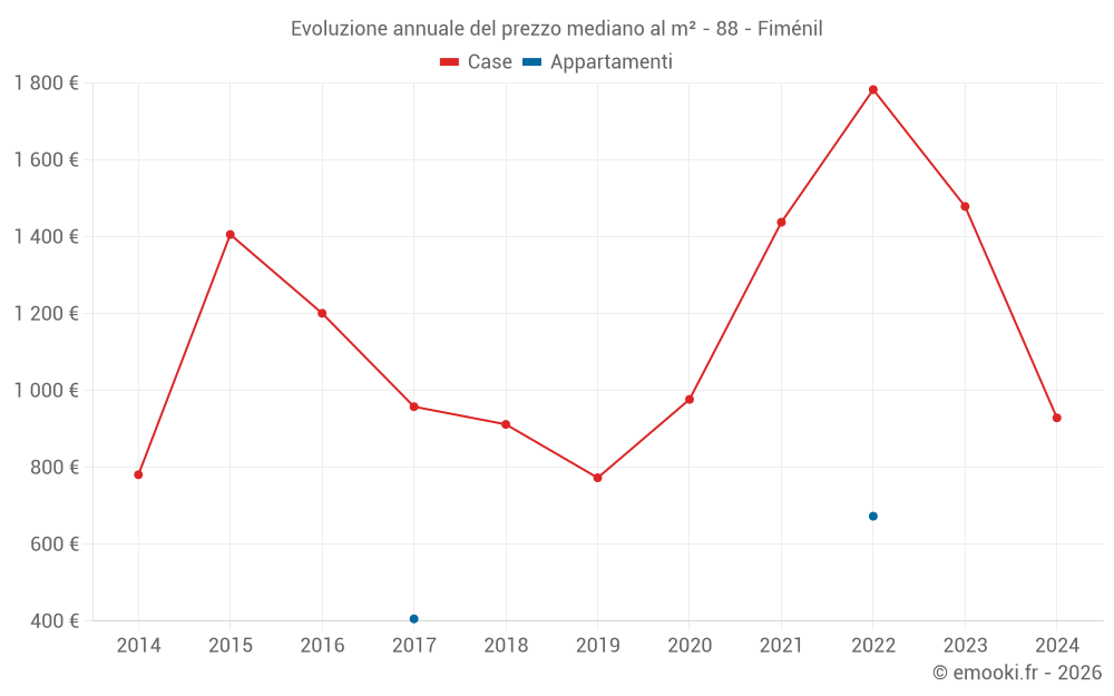 Evoluzione del prezzo mediano al m² degli appartamenti