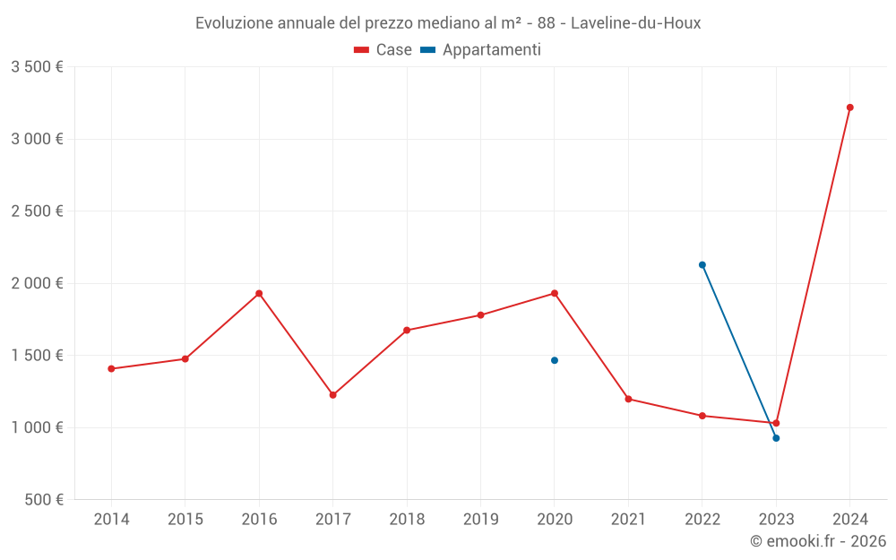 Evoluzione del prezzo mediano al m² degli appartamenti