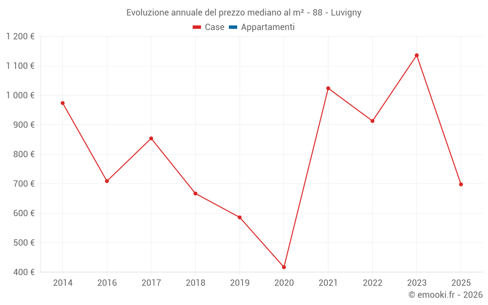 Evoluzione del prezzo mediano al m² degli appartamenti